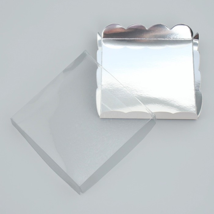 Коробка для печенья, кондитерская упаковка с PVC крышкой, «Серебристая», 13 х 13 х 3 см