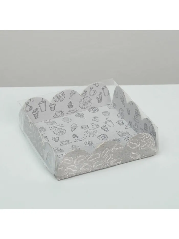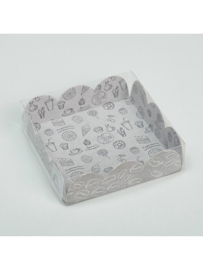 Коробка для печенья, кондитерская упаковка с PVC крышкой, «Вкусности», 10.5 х 10.5 х 3 см — Характеристики