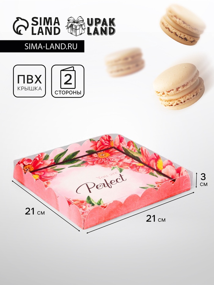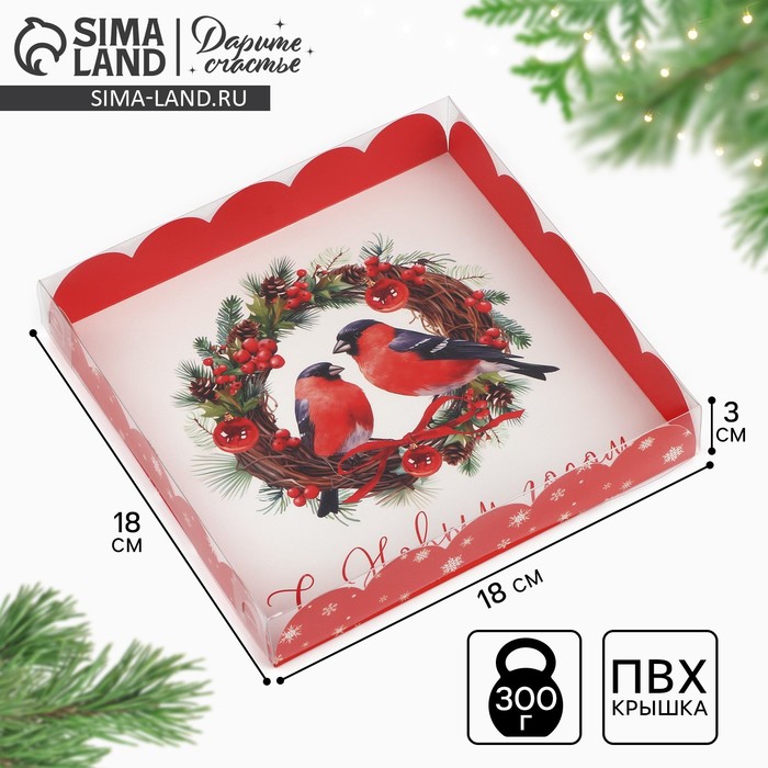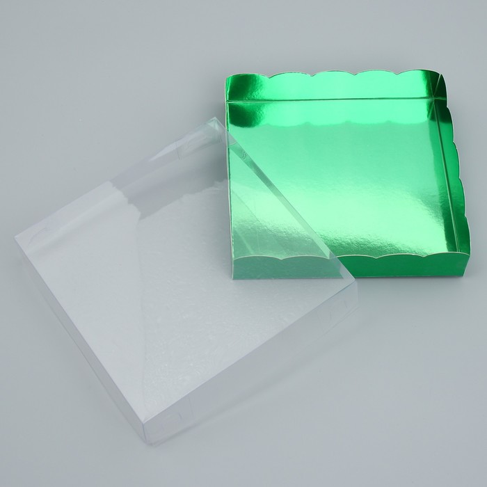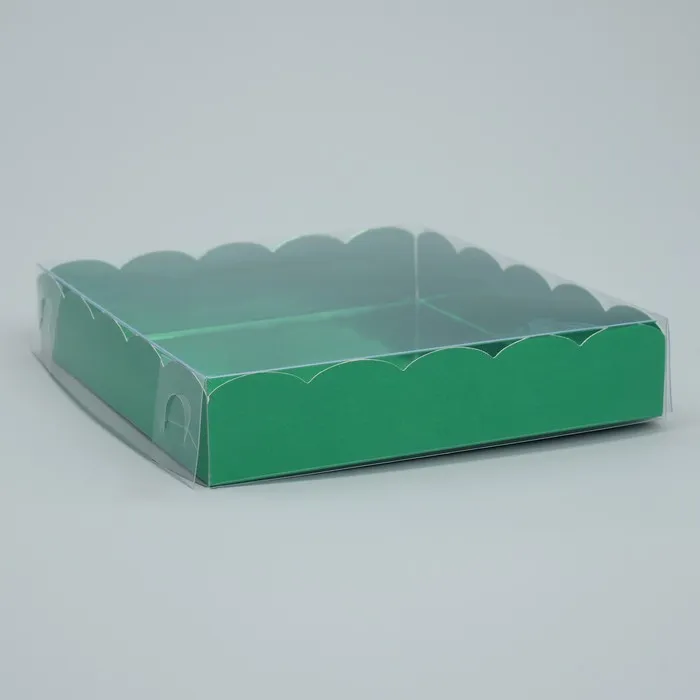 Коробка для печенья, кондитерская упаковка с PVC крышкой, «Зеленая», 15 х 15 х 3 см — Характеристики