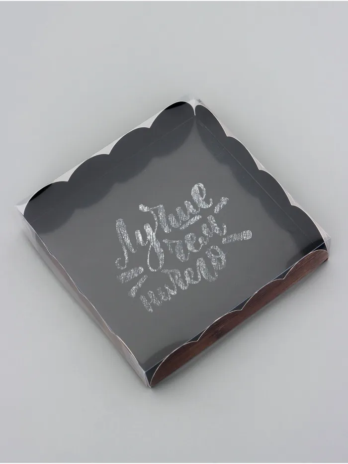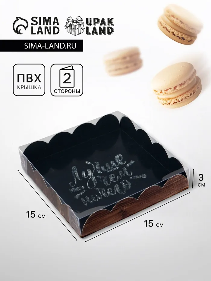 Прочный картон обеспечивает надежную защиту содержимого, а прозрачная крышка позволяет сразу оценить внешний вид угощений без необходимости открывать коробку.
