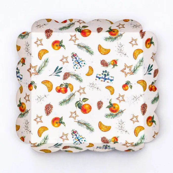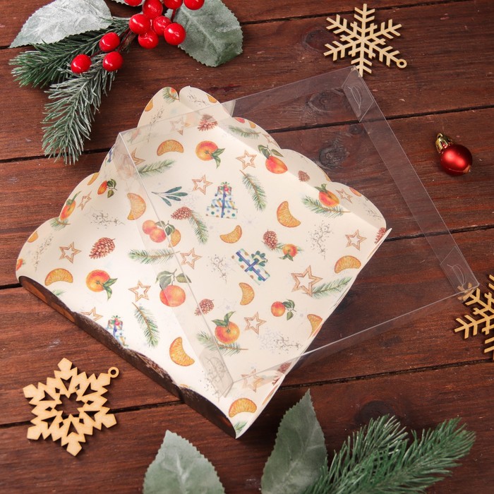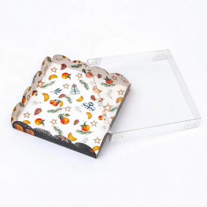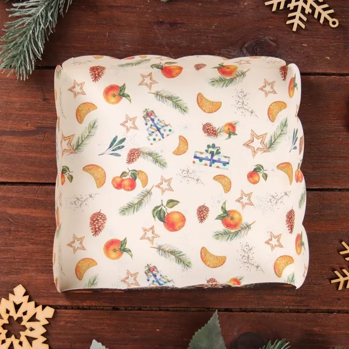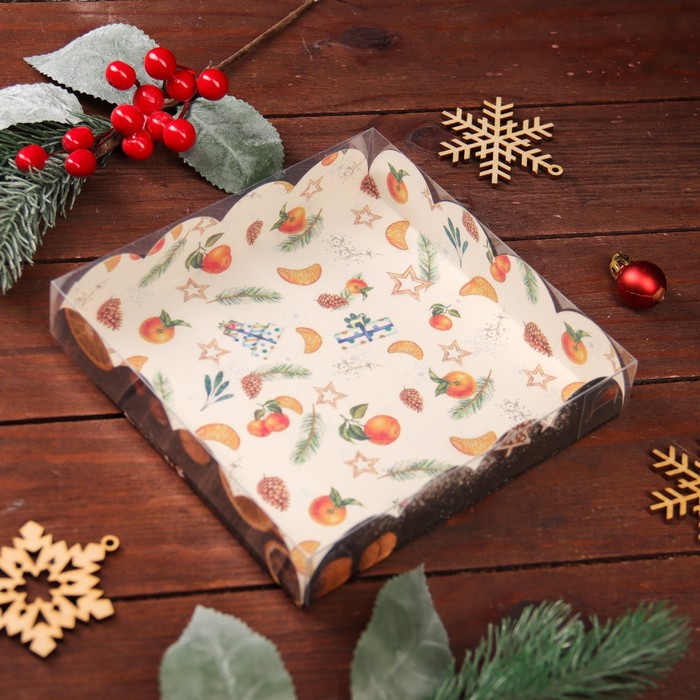 Коробка для печенья, «Мандарины», 15×15×3 см, Новый год — Характеристики