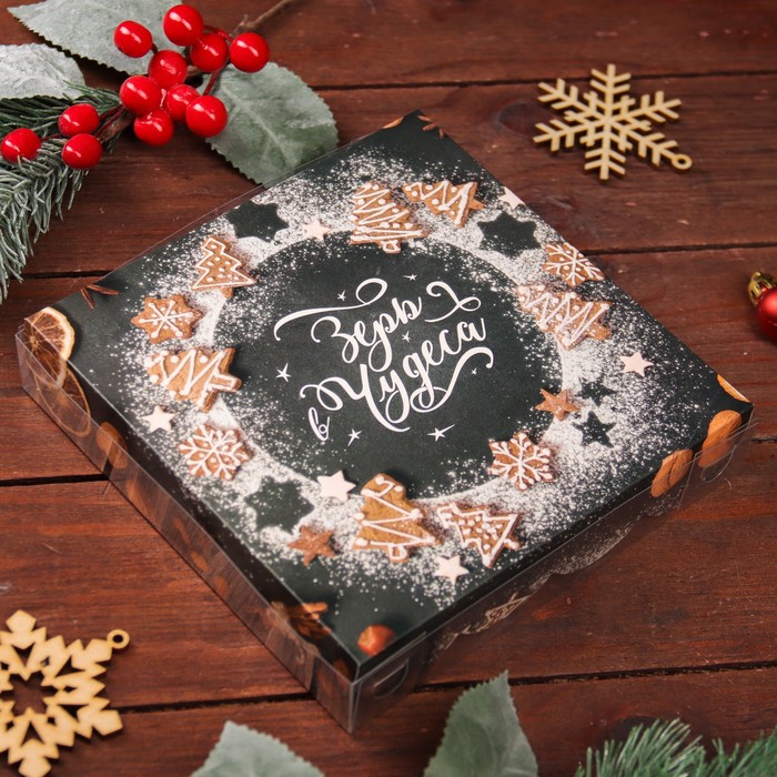 Коробка для печенья с прозрачной крышкой, можно видеть содержимое коробки. Прекрасно подойдет для десертов, можно использовать для праздничного декора.