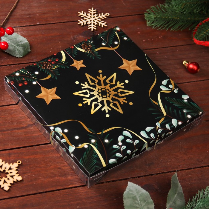 Коробка для печенья, «Новогодняя изумрудная», 21×21×3 см
