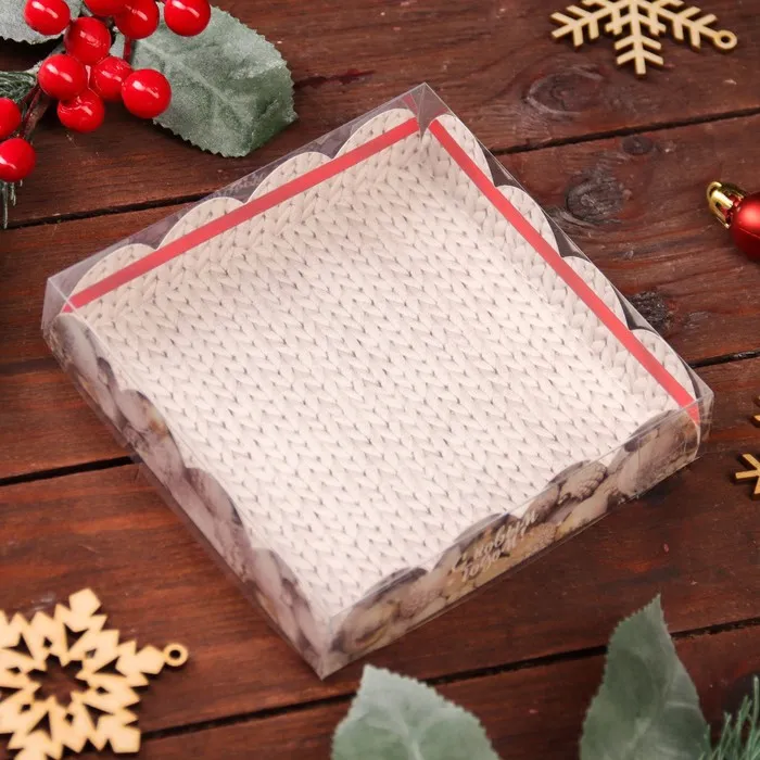 Коробка для печенья с прозрачной крышкой, можно видеть содержимое коробки. Прекрасно подойдет для десертов, можно использовать для праздничного декора.