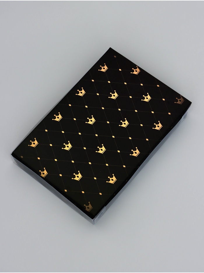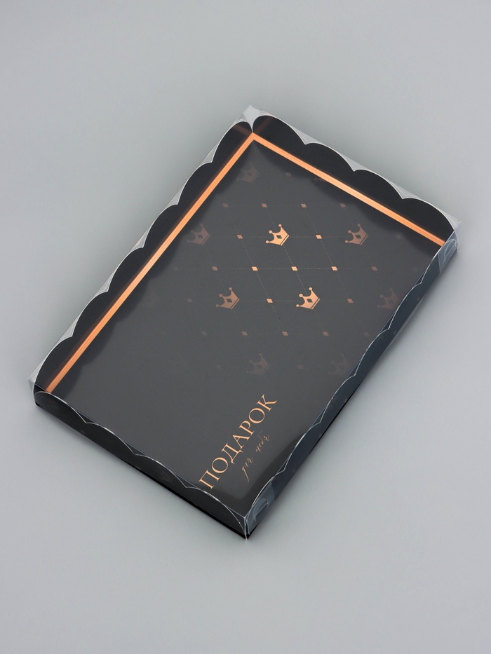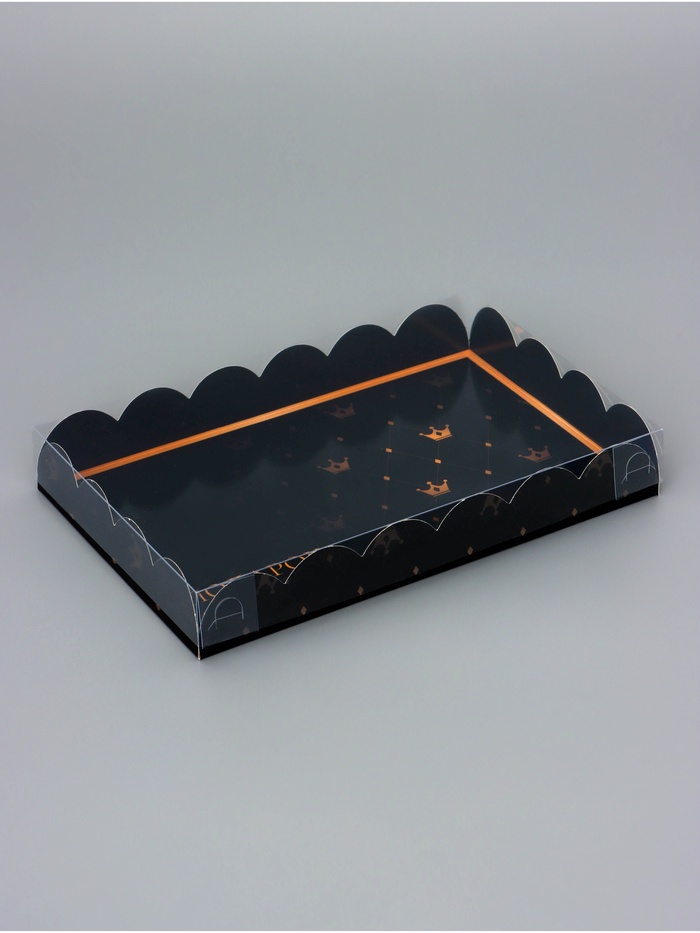 Прочный картон обеспечивает надежную защиту содержимого, а прозрачная крышка позволяет сразу оценить внешний вид угощений без необходимости открывать коробку.