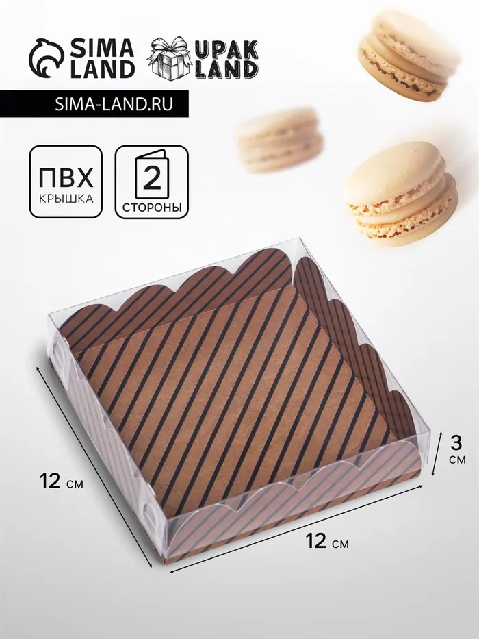 Коробка для печенья, «Полосы крафт» 12×12×3 см — Характеристики
