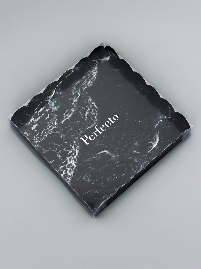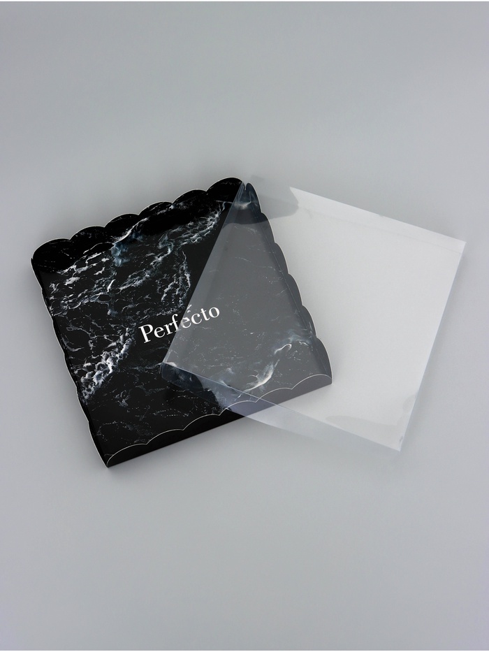 Прочный картон обеспечивает надежную защиту содержимого, а прозрачная крышка позволяет сразу оценить внешний вид угощений без необходимости открывать коробку.