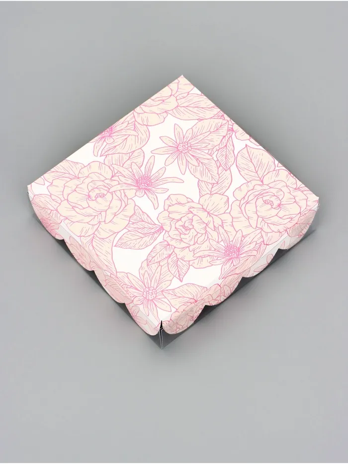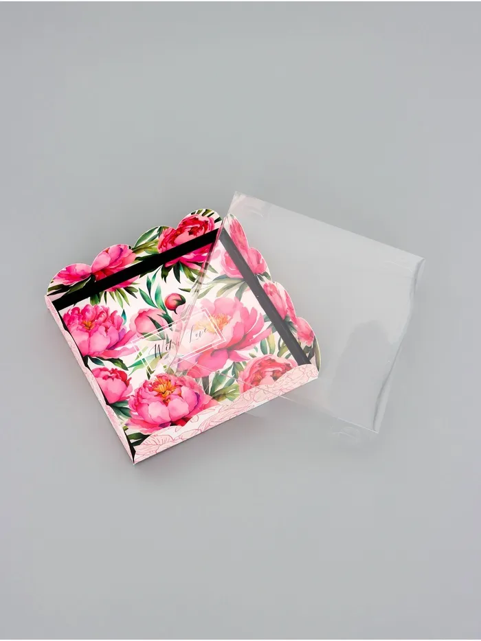 Прочный картон обеспечивает надежную защиту содержимого, а прозрачная крышка позволяет сразу оценить внешний вид угощений без необходимости открывать коробку.