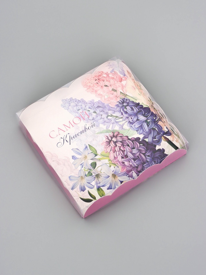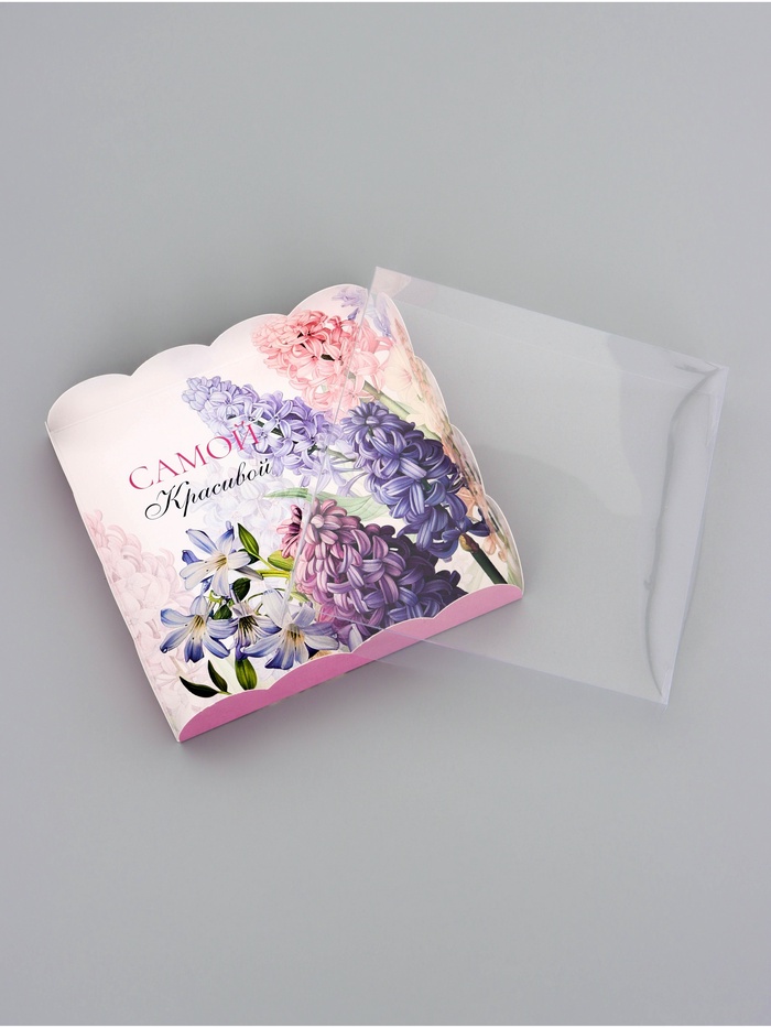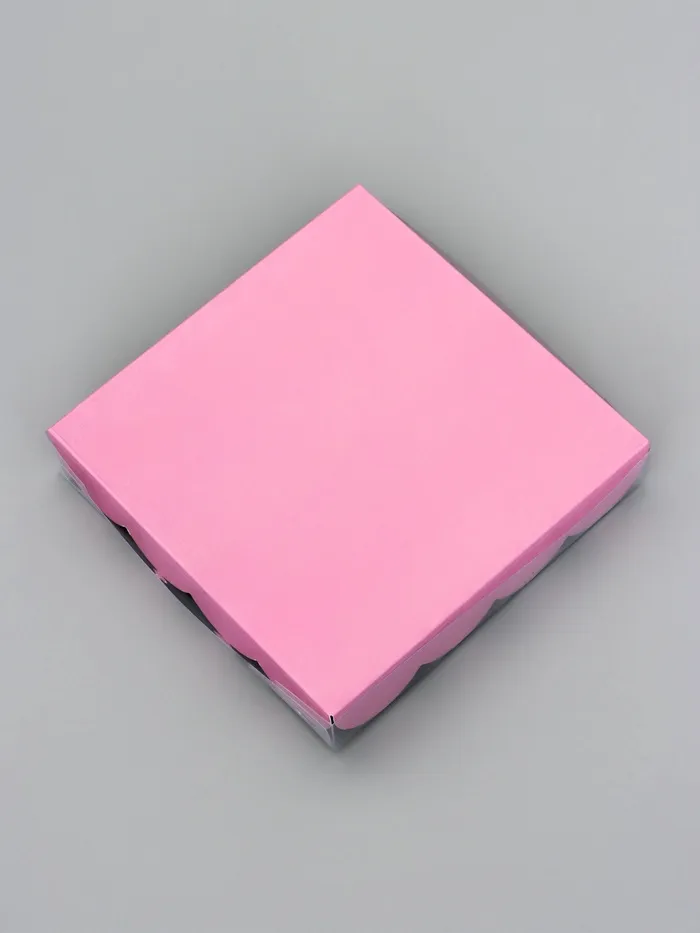 Прочный картон обеспечивает надежную защиту содержимого, а прозрачная крышка позволяет сразу оценить внешний вид угощений без необходимости открывать коробку.