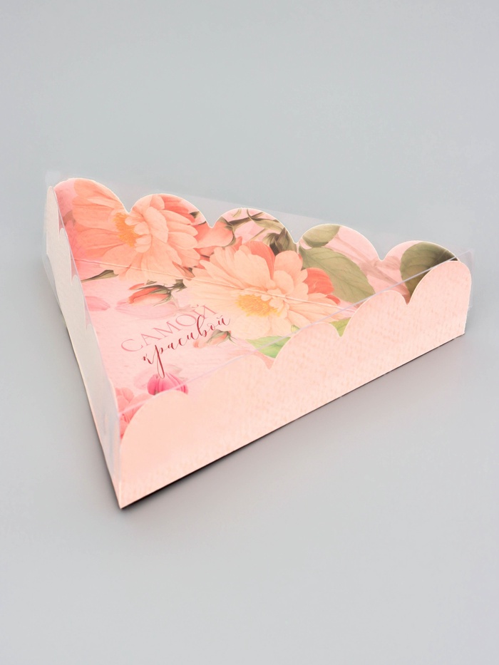 Прочный картон обеспечивает надежную защиту содержимого, а прозрачная крышка позволяет сразу оценить внешний вид угощений без необходимости открывать коробку.