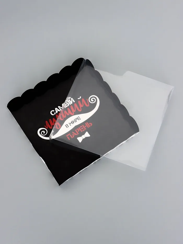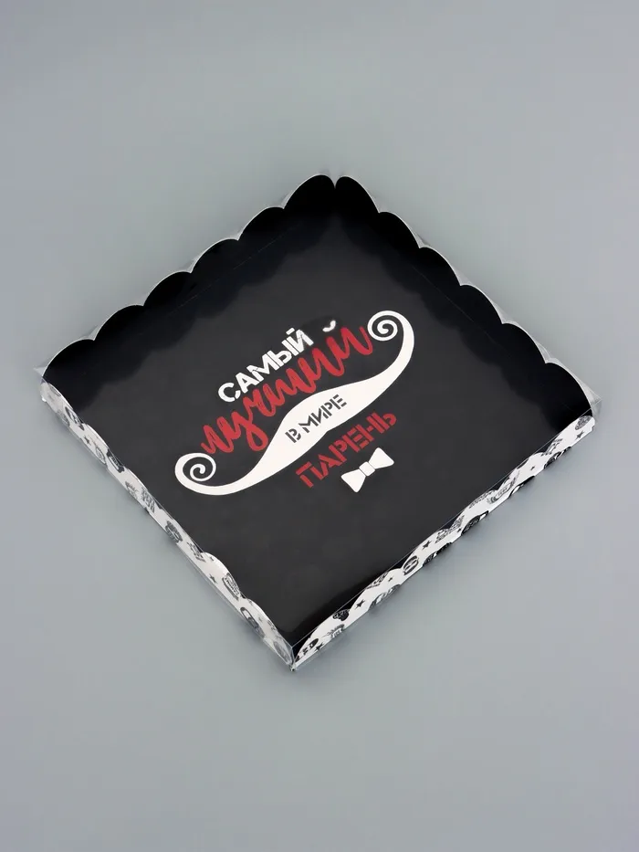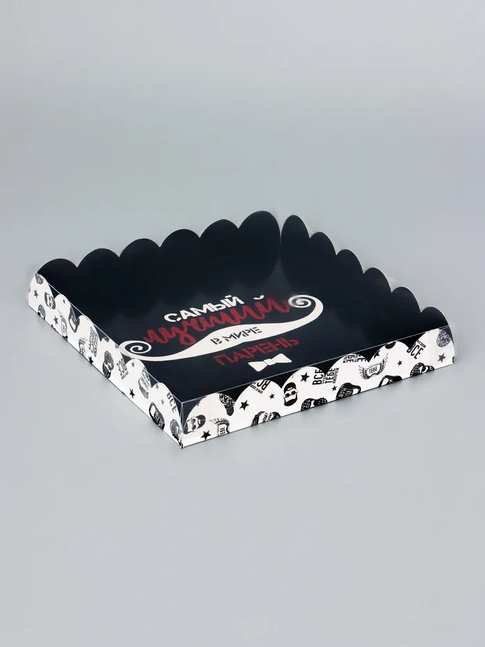 Прочный картон обеспечивает надежную защиту содержимого, а прозрачная крышка позволяет сразу оценить внешний вид угощений без необходимости открывать коробку.