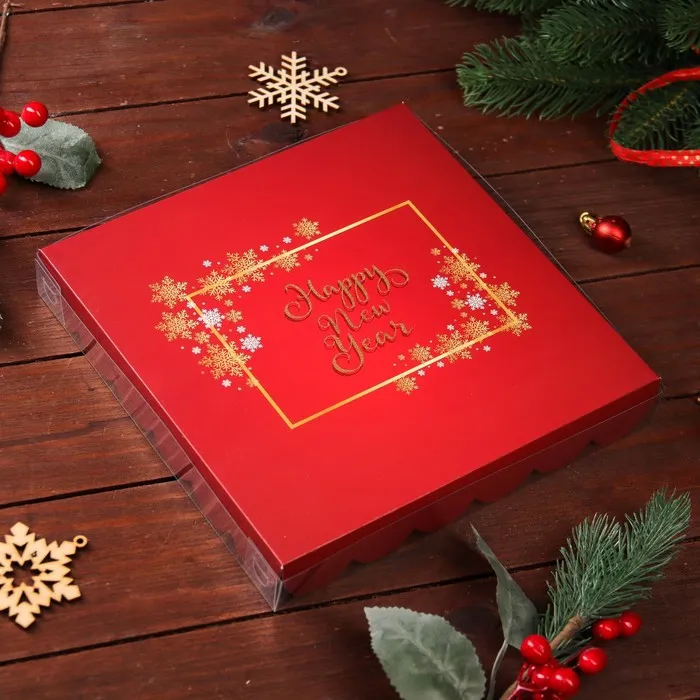 Коробка для печенья, «Счастливого праздника», 21×21×3 см, Новый год — Характеристики