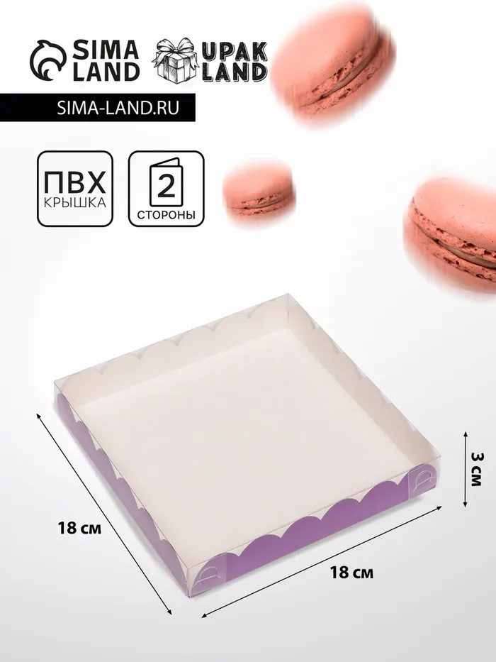 Коробка для печенья, сиреневая, 18×18×3 см — Характеристики