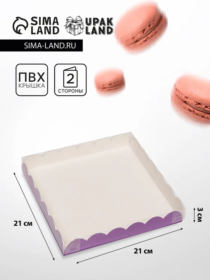 Коробка для печенья, сиреневая, 21×21×3 см — Характеристики