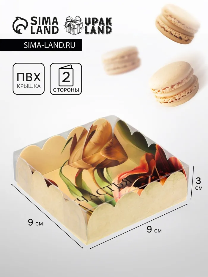 Коробка для печенья, «Тюльпаны», 9×9×3 см — Характеристики