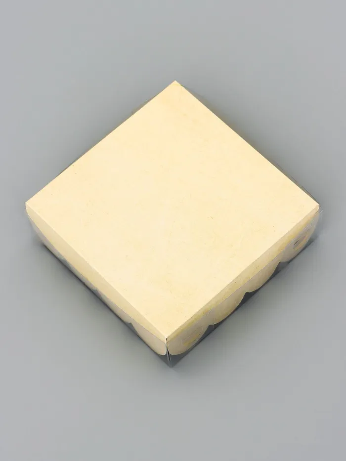 Прочный картон обеспечивает надежную защиту содержимого, а прозрачная крышка позволяет сразу оценить внешний вид угощений без необходимости открывать коробку.