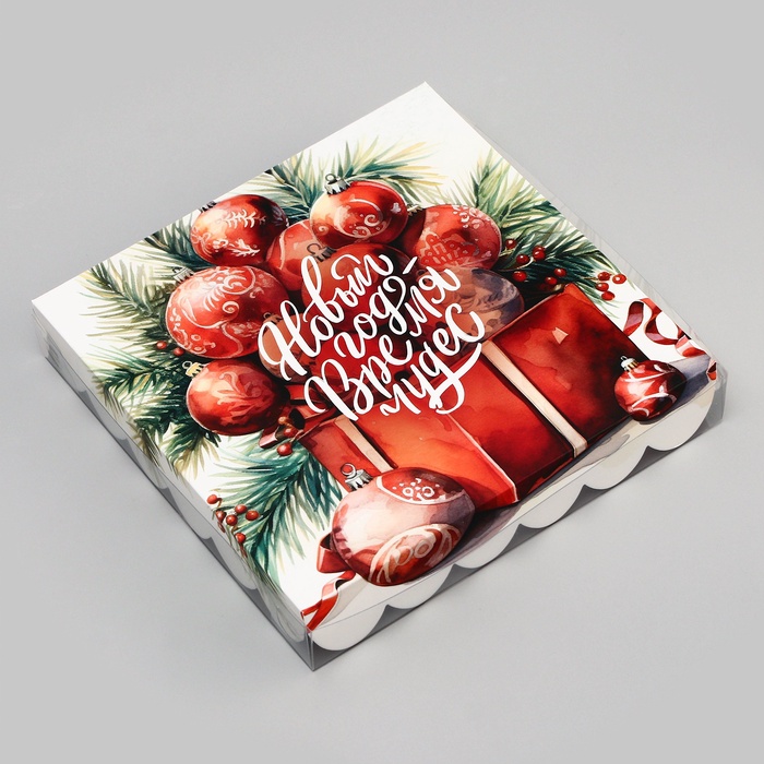 Коробка для печенья, «Время Чудес!» 18×18×3 см, Новый год — Характеристики