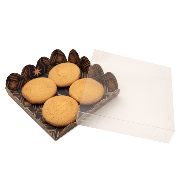 Коробка для печенья с прозрачной крышкой. Прекрасно подойдет для десертов, можно использовать для праздничного декора.Преимущества:- плотный картон;- сборная конструкция;- удобно при транспортировке.