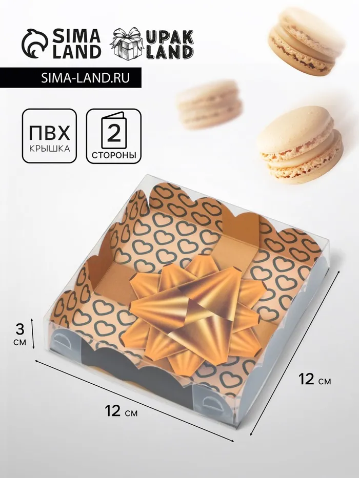 Коробка для печенья, «Золотой бант», 12×12×3 см — Характеристики