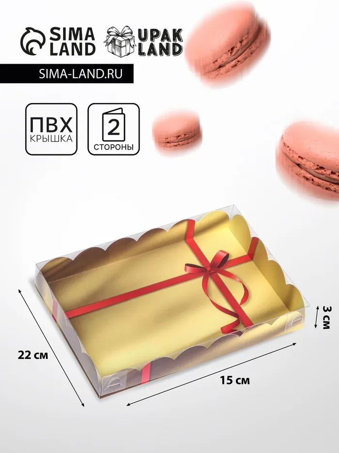Коробка для печенья, «Золотой бант»22×15×3 см — Характеристики