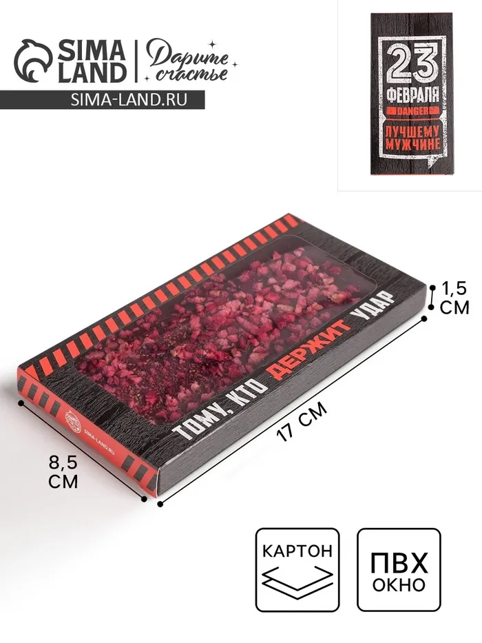 Коробка для шоколада, кондитерская упаковка, «23 февраля», с окном, 17.3 х 8.8 х 1.5 см — Характеристики