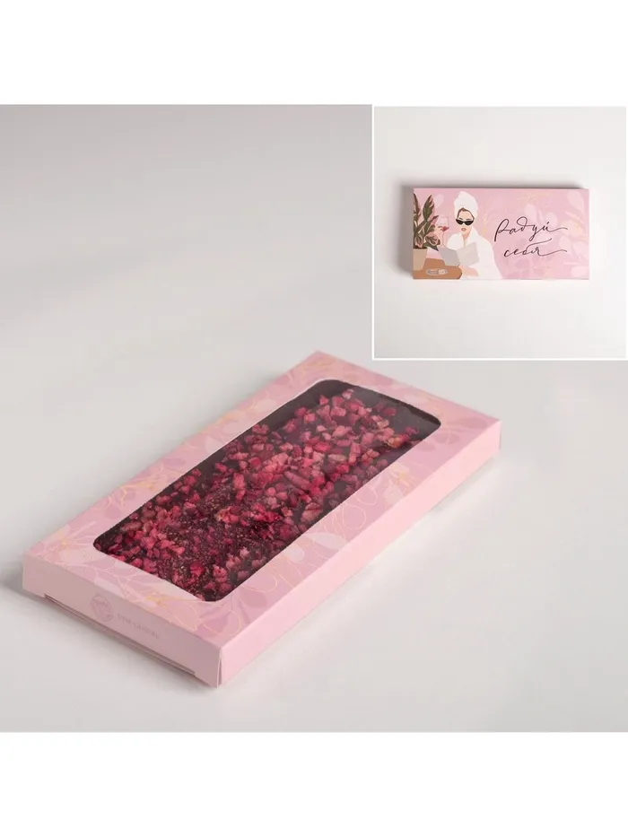 Коробка для шоколада, кондитерская упаковка, «Радуй себя», с окном, 17.3 х 8.8 х 1.5 см — Характеристики