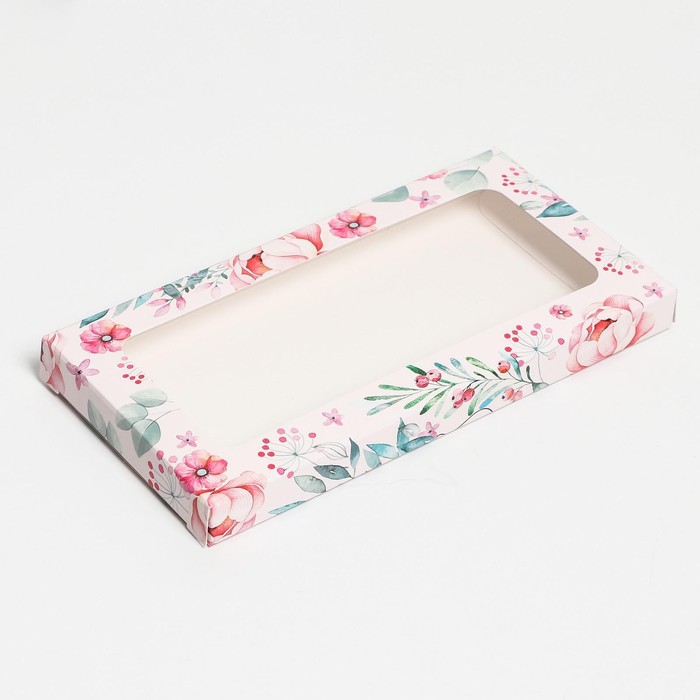 Коробка для шоколада, кондитерская упаковка, «Цветы», с окном, 17.3 х 8.8 х 1.5 см — Характеристики