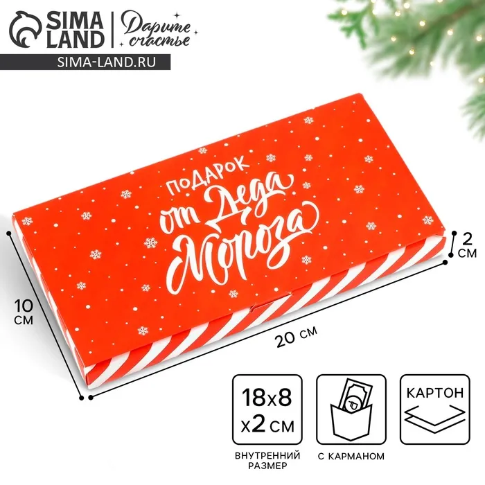 Коробка для шоколада с местом для денег «Подарок от Деда Мороза», 20 х 2 х 10 см — Характеристики