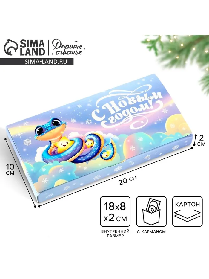 Коробка для шоколада с местом для денег «С Новым годом», 20×2×10 см — Характеристики
