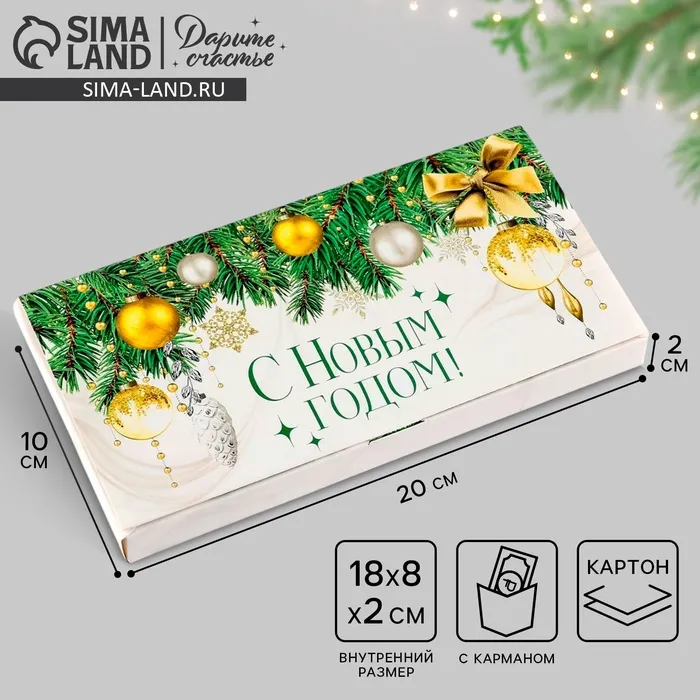 Коробка для шоколада с местом для денег «Счастья в Новом году», 20 х 2 х 10 см — Характеристики