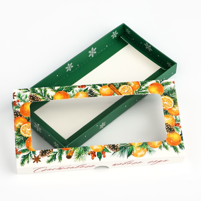 Коробка для шоколада «Счастливого Нового года!», с окном, 16.4 х 8.4 х 1.7 см
