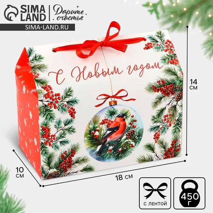Коробка для сладостей «С Новым годом», снегирь, 10 х 18 х 14 см — Характеристики
