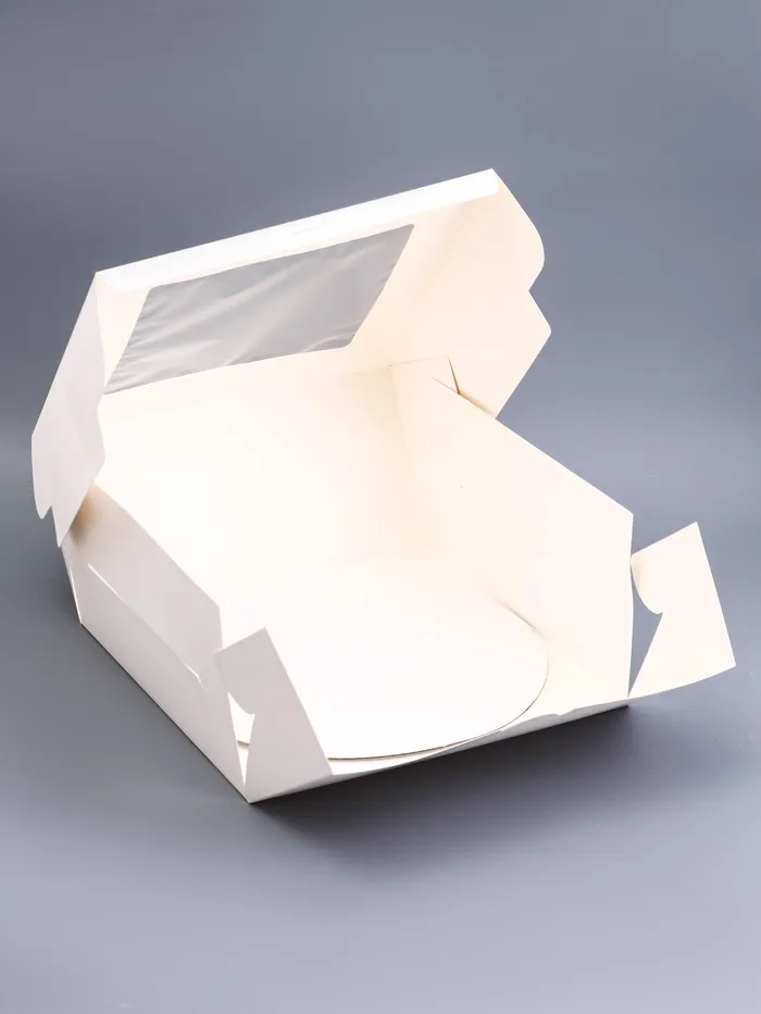 Коробка для торта белого цвета — это стильное и практичное решение для упаковки десертов. Её квадратная форма и лаконичный дизайн делают её универсальной для любых торжеств, будь то день рождения, свадьба или корпоративное мероприятие. Белый цвет подчеркивает элегантность и позволяет акцентировать внимание на самом десерте.