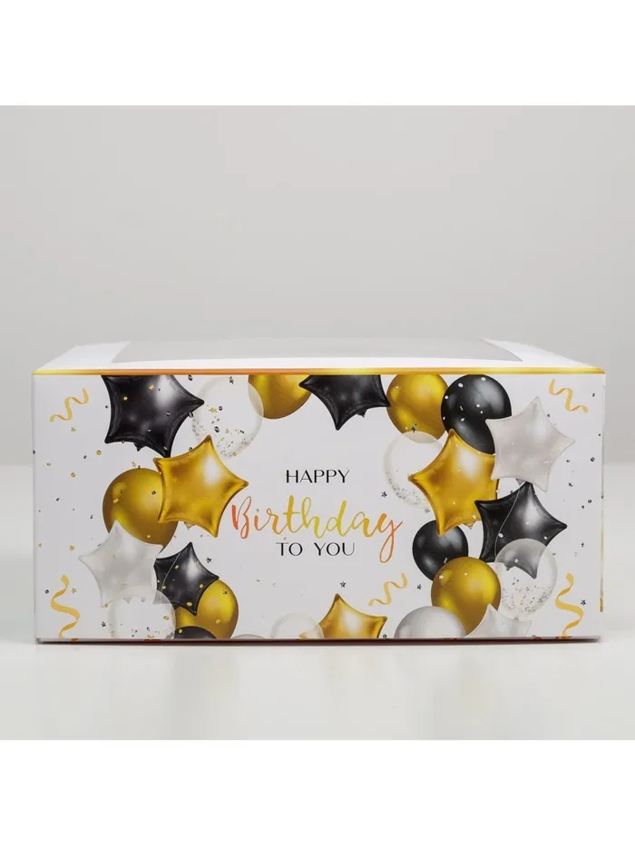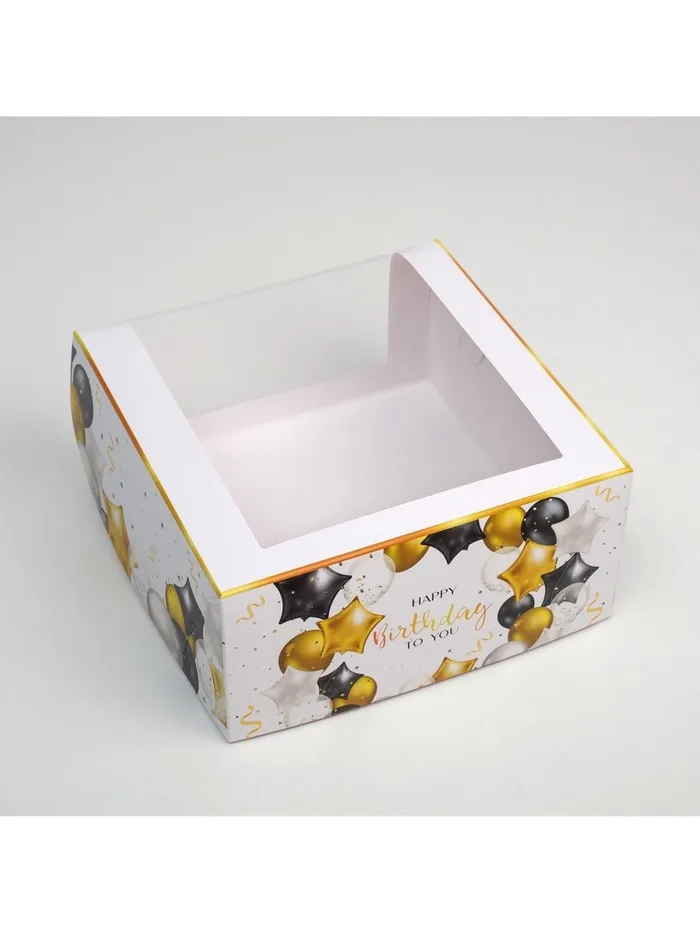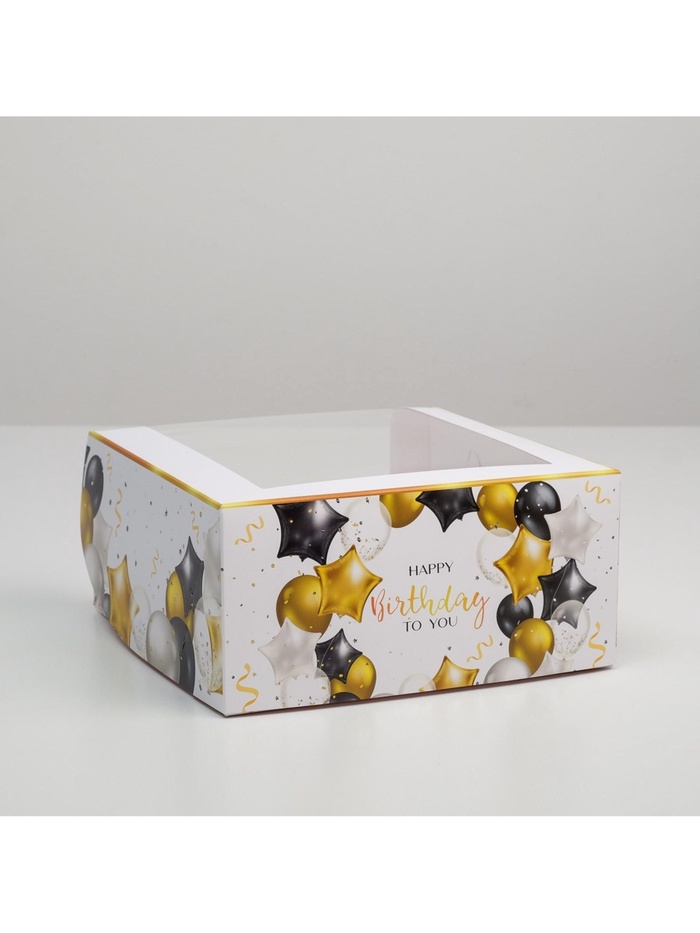 Коробка для торта с окном, кондитерская упаковка Happy Birthday 23 х 23 х 11 см