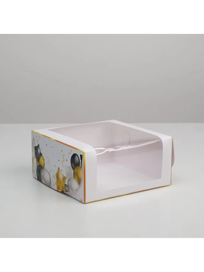 Коробка для торта с окном, кондитерская упаковка Happy Birthday 23 х 23 х 11 см — Характеристики