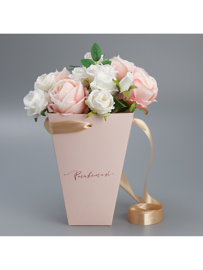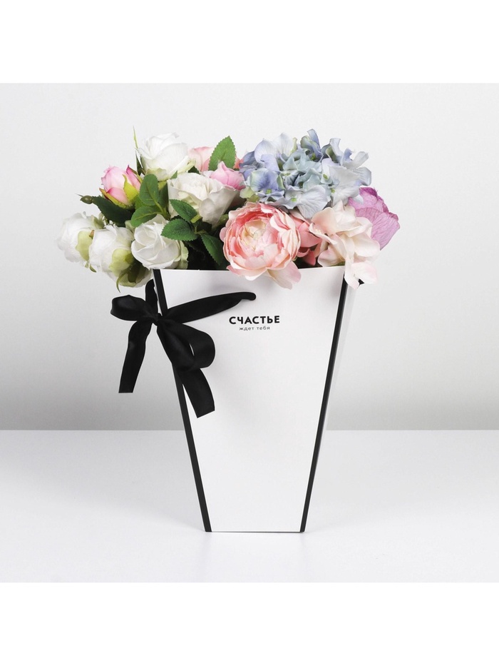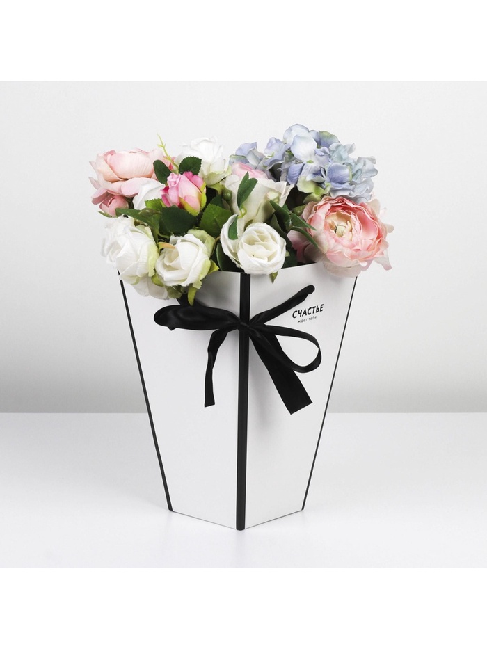 Коробка для цветов — новое решение для оформления букетов. Такая композиция выглядит оригинально и стильно. Упаковка удобна для переноски. При наличии флористической губки изделие можно использовать в качестве вазы. Кроме редкого полива и сбрызгивания растения не потребуют особенного ухода. Букет надолго сохранит свежесть и красоту.