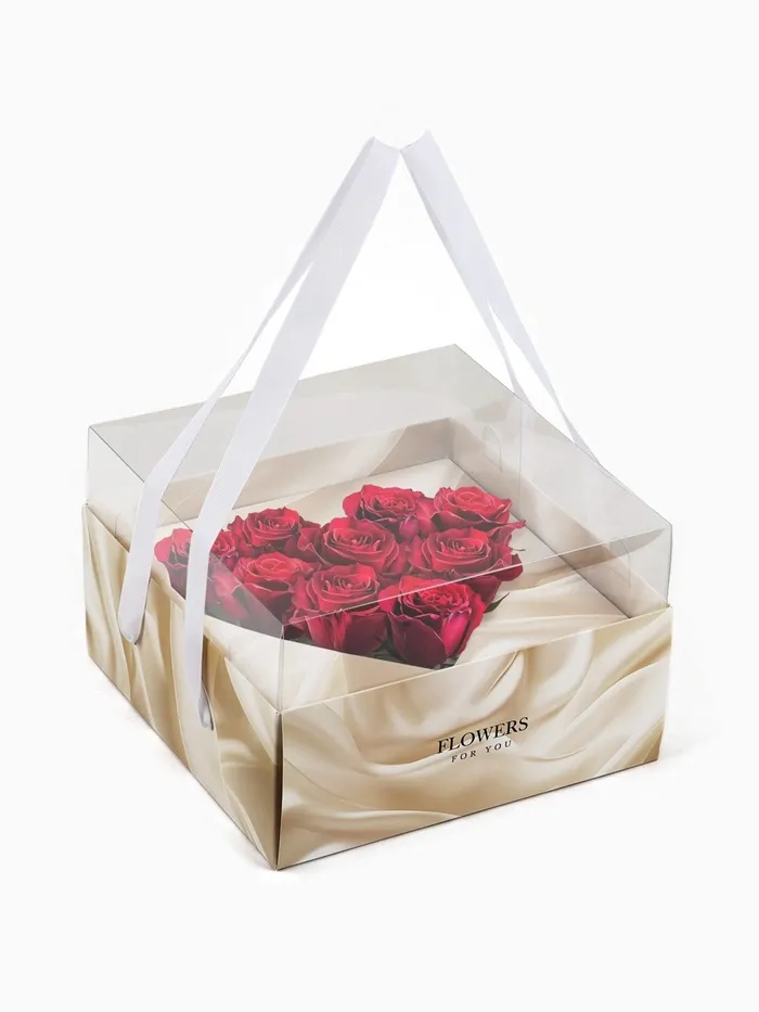 Коробка для цветов с фигурным вкладышем и пластиковой крышкой «Для тебя», 23.5 х 23.5 х 15 см