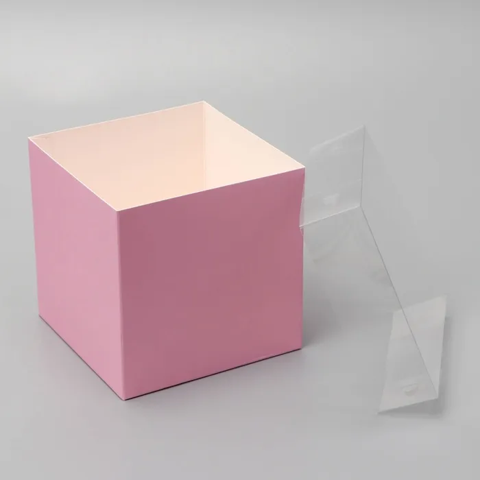 Коробка для цветов с PVC крышкой имеет размеры 12 см в длину, 12 см в ширину и 12 см в высоту. Она выполнена из высококачественного картона, который обеспечивает прочность и долговечность.