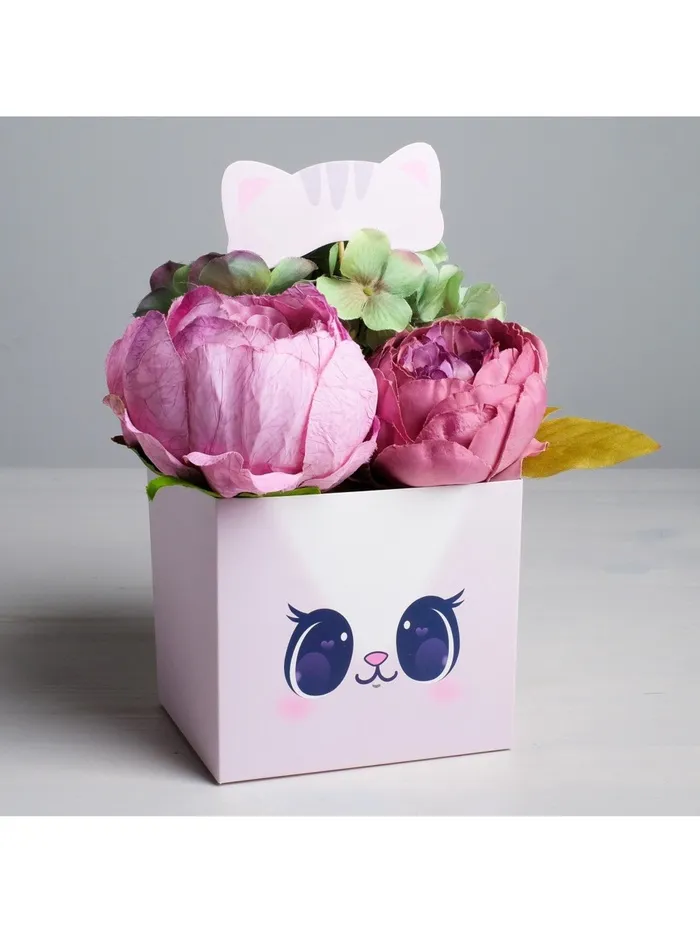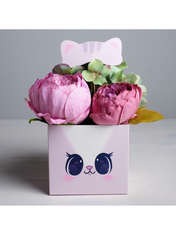 Коробка для цветов с топпером «Котик», 11×12×10 см — Характеристики