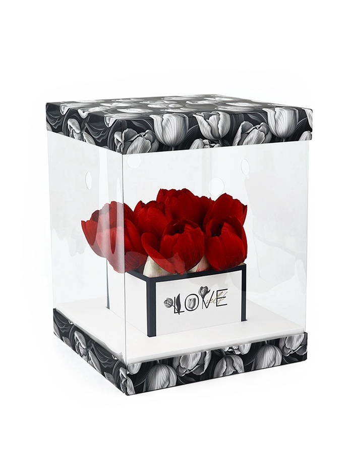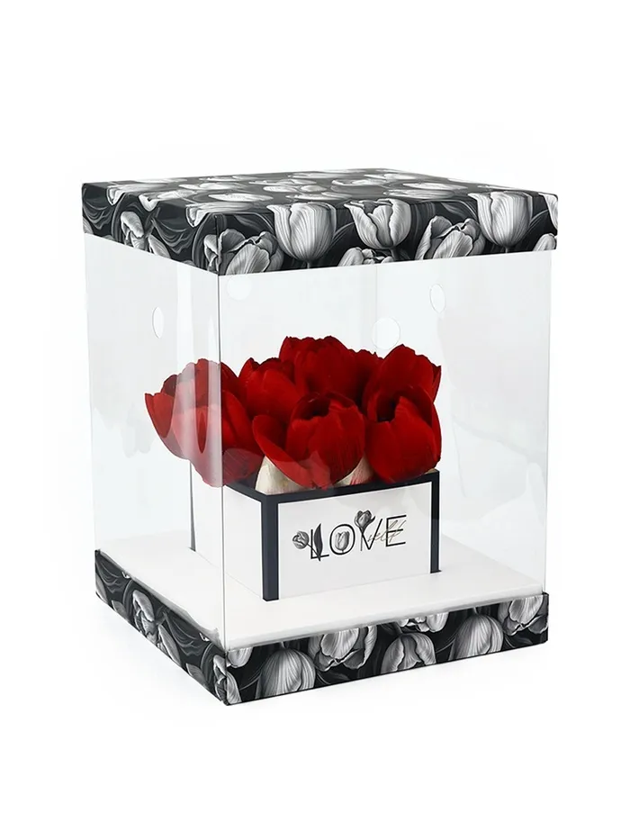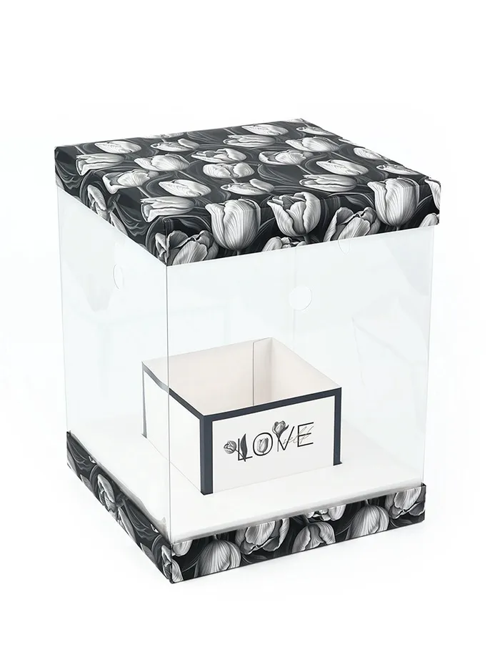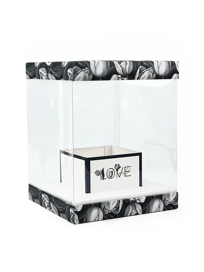 Коробка для цветов с вазой и пластиковыми окнами складная «Чёрно-белая эстетика», 23 х 30 х 23 см — Характеристики