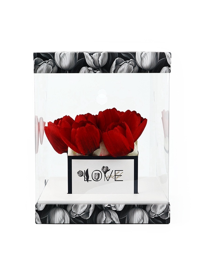 Коробка подарочная для цветов с вазой и пластиковыми окнами складная, упаковка, With Love 23 х 30 х 23 см