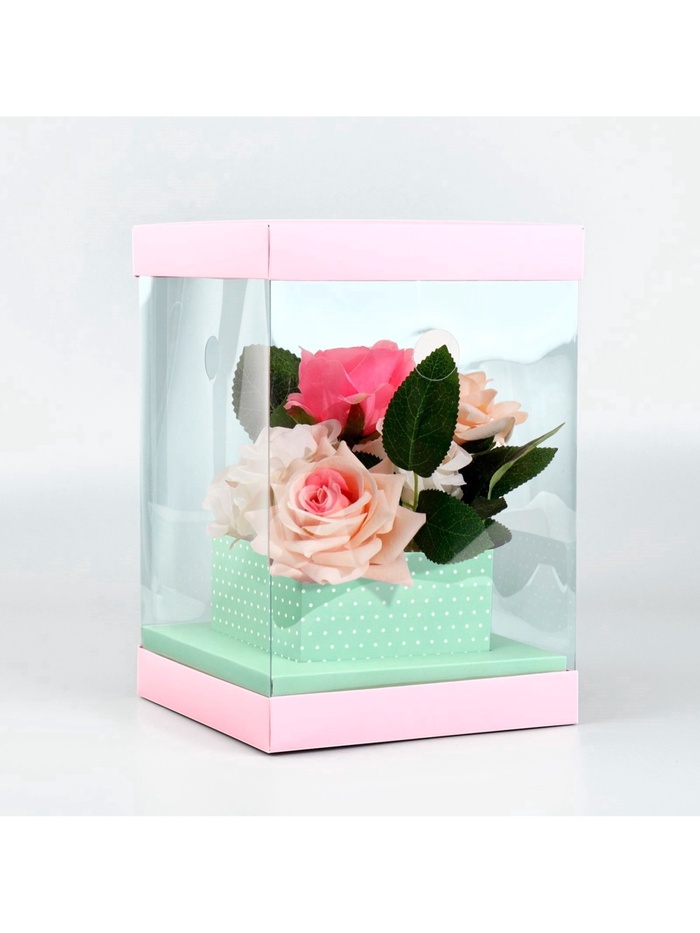 Коробка для цветов с вазой и пластиковыми окнами складная «Нежность», 16 х 23 х 16 см