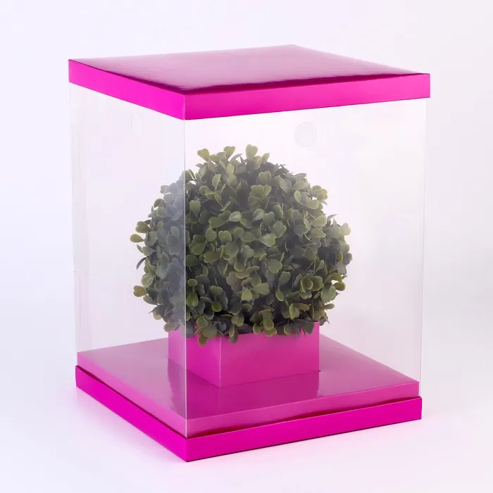Окна из ПВХ на боковых стенках коробки позволяют легко просматривать цветы, не открывая коробку, что делает процесс ухода за ними более удобным.