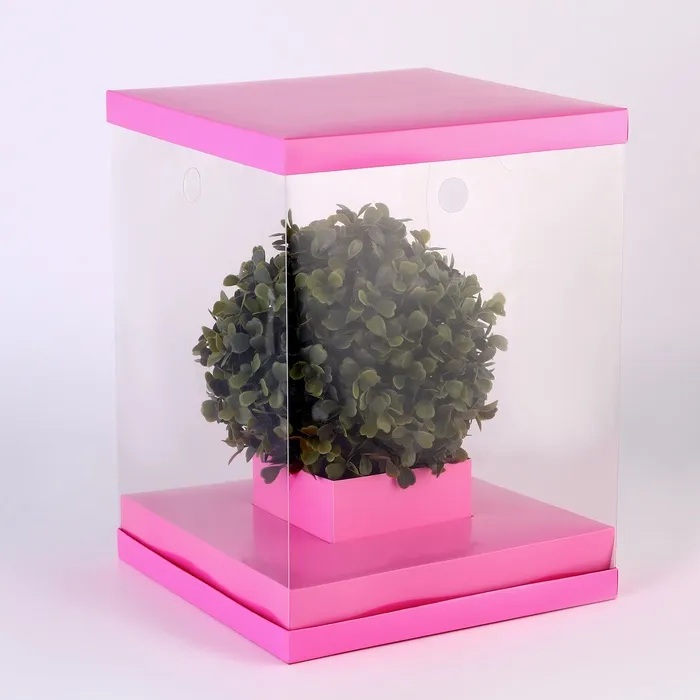 Окна из ПВХ на боковых стенках коробки позволяют легко просматривать цветы, не открывая коробку, что делает процесс ухода за ними более удобным.