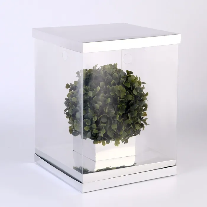 Окна из ПВХ на боковых стенках коробки позволяют легко просматривать цветы, не открывая коробку, что делает процесс ухода за ними более удобным.