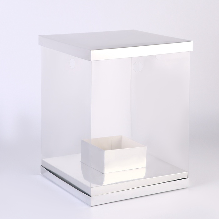 Коробка для цветов с вазой и PVC окнами складная, 23×30×23 см, серебро — Характеристики