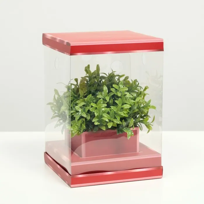 Коробка для цветов с вазой и PVC окнами складная, красный, 16×23×16 см — Характеристики