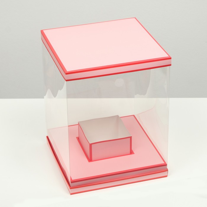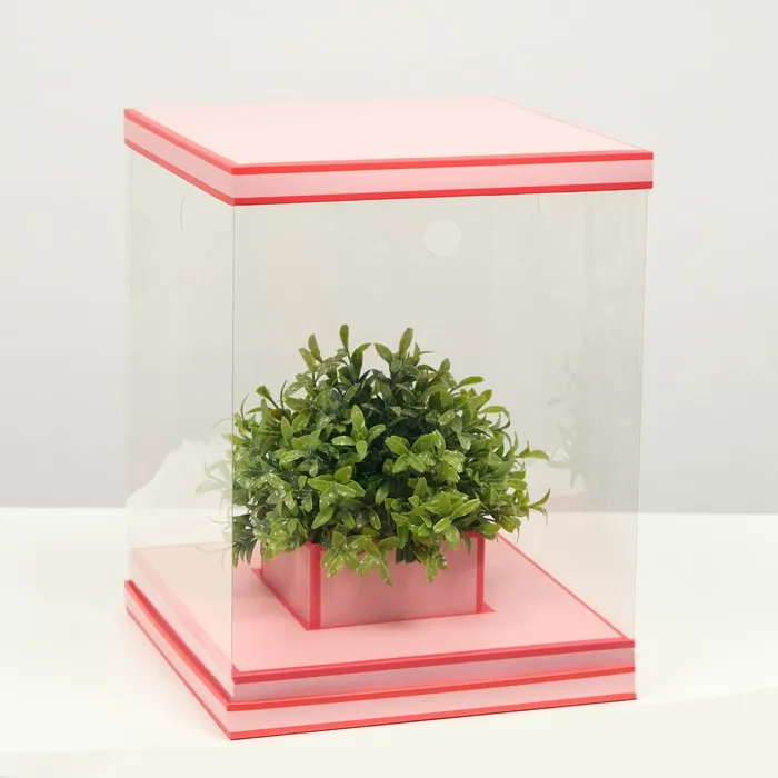 Коробка для цветов с вазой и PVC окнами складная, насыщенно - розовый, 23×30×23 см — Характеристики