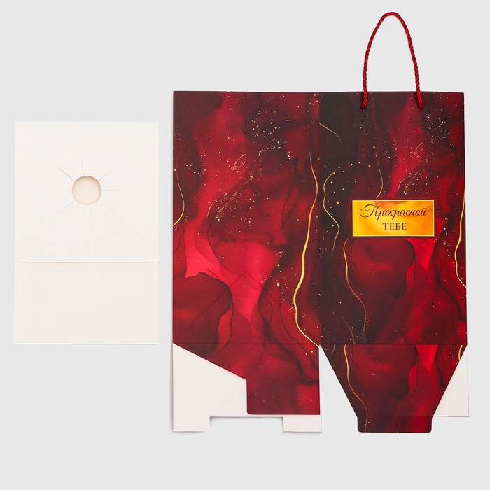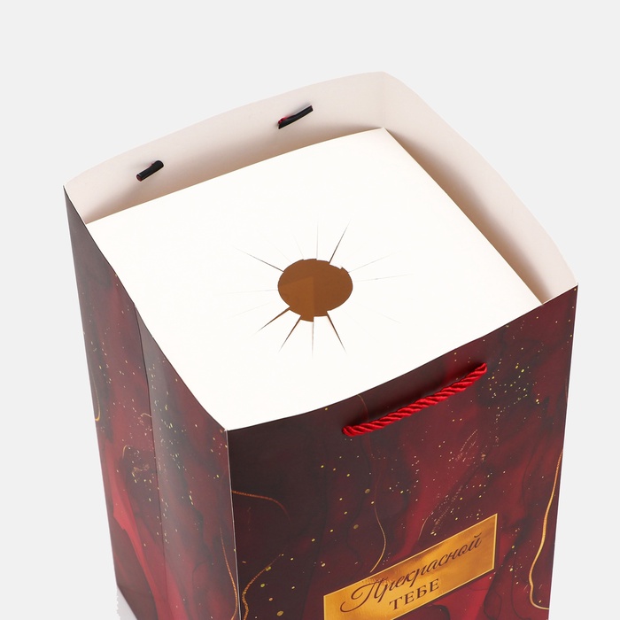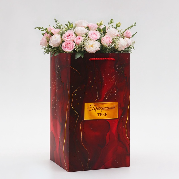 Элегантная упаковка для особенных букетов! Подарочная коробка для цветов 20×20×35 см — стильное решение с поздравительной надписью «Прекрасной тебе». Сочетание золотого и красного создаёт праздничное настроение.