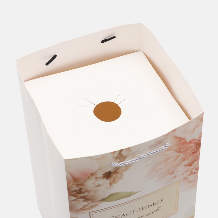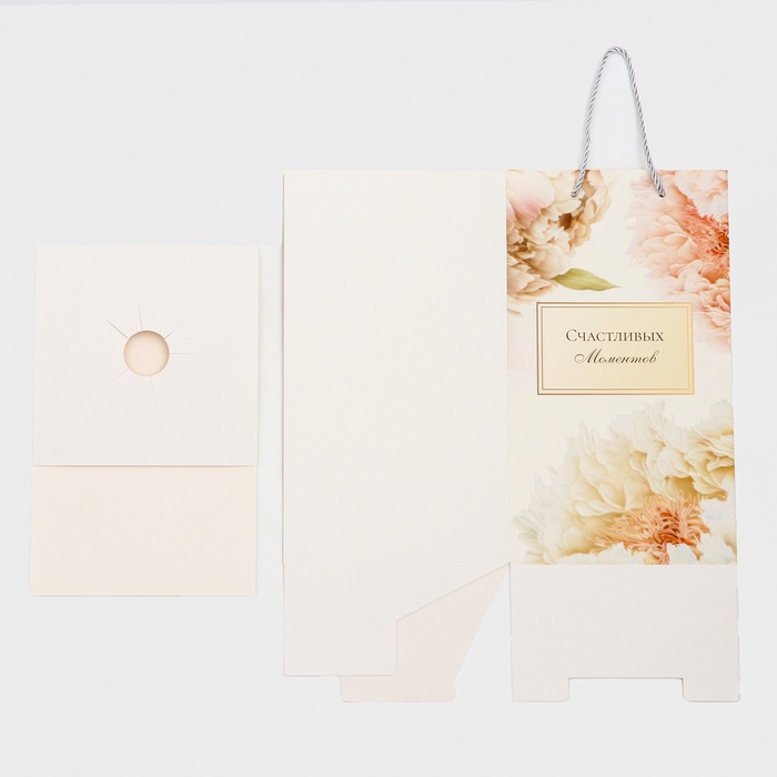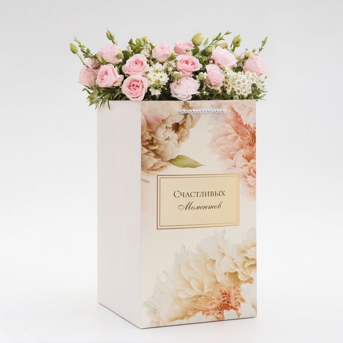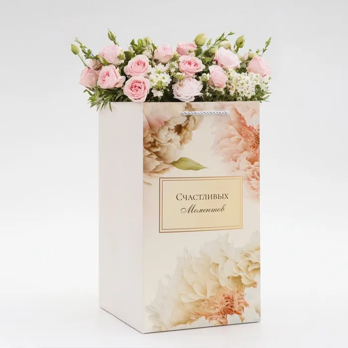 Элегантная упаковка для особенных поздравлений! Подарочная коробка для цветов «Счастливых моментов» — стильное решение с готовым праздничным дизайном. Нежные бежево-белые тона и цветочные узоры создают атмосферу тепла и радости.